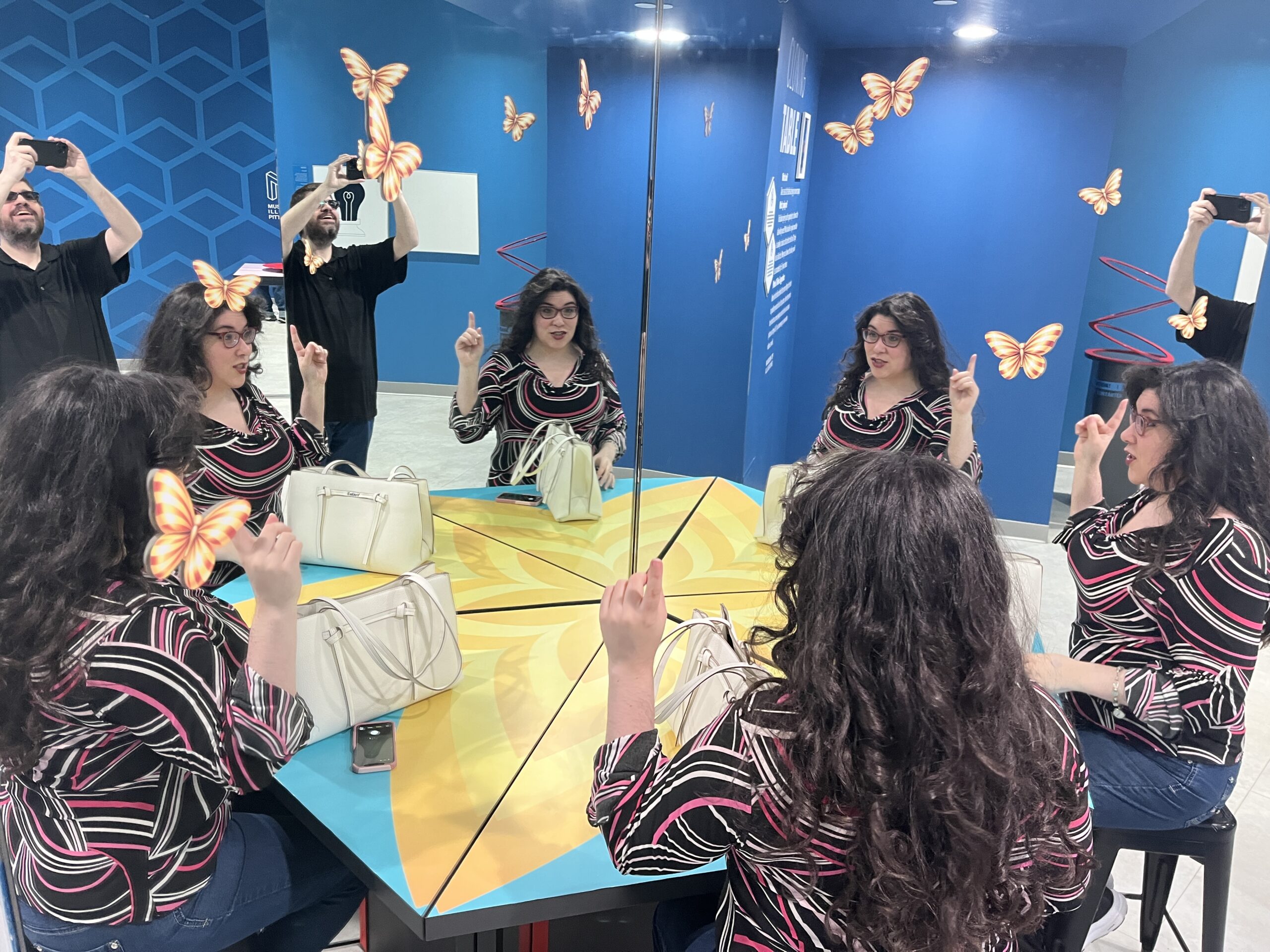 The exhibits themselves came in three main types: Images, Installations, and Illusion Rooms. On the Installations side of things, you’ll encounter familiar concepts like the The Beuchet Chair…a famous optical illusion that manipulates perspective to make it look like someone is shrinking or growing. Or, if you’re more into those optical illusion books that give me a headache when I stare at them too long, the Images section might be more your speed. Nothing beats the larger than life Illusion Rooms where you’ll be struggling to hang on to a railing…and your senses! The museum also features a gift shop should you wish to bring home a mind-teaser or two.